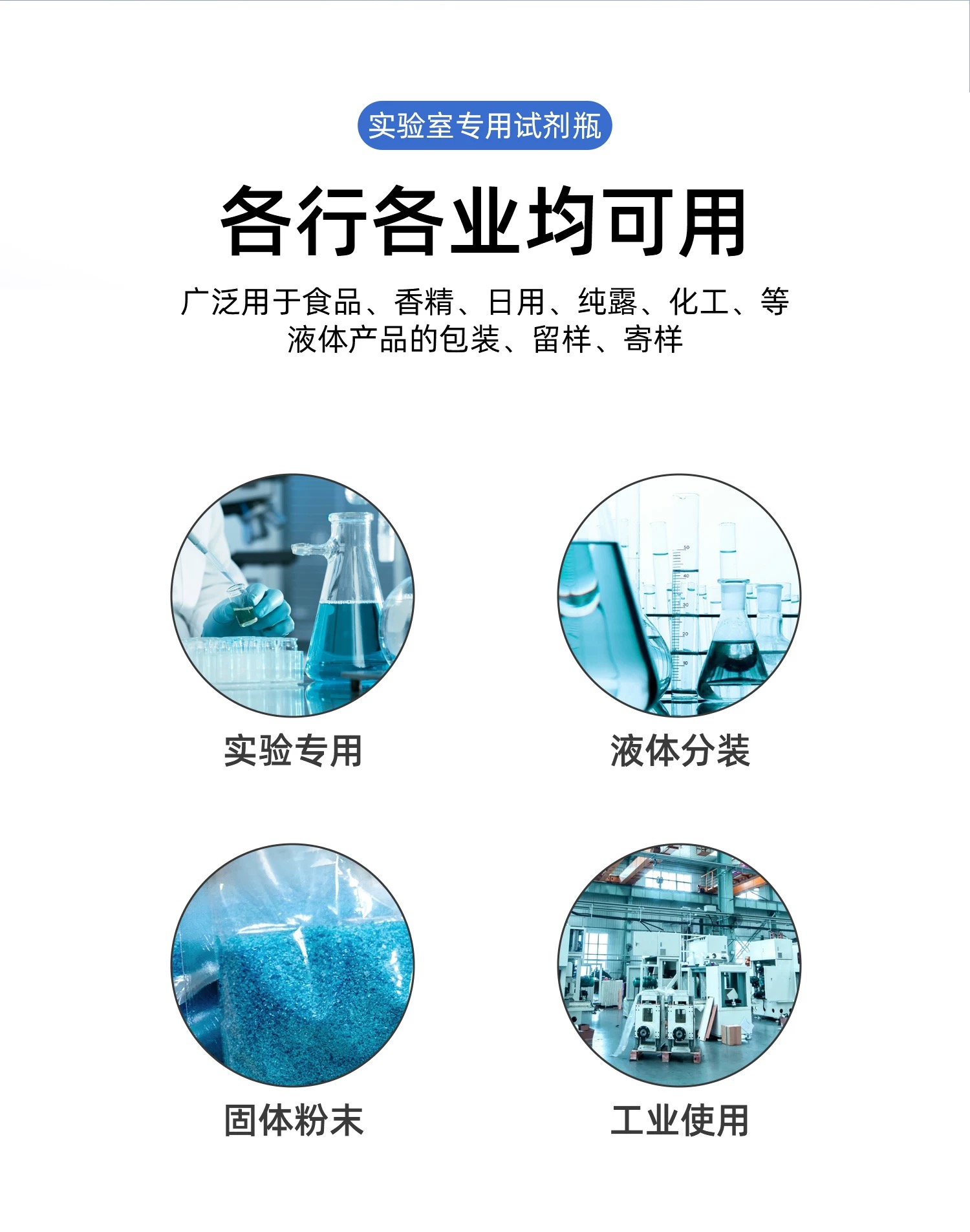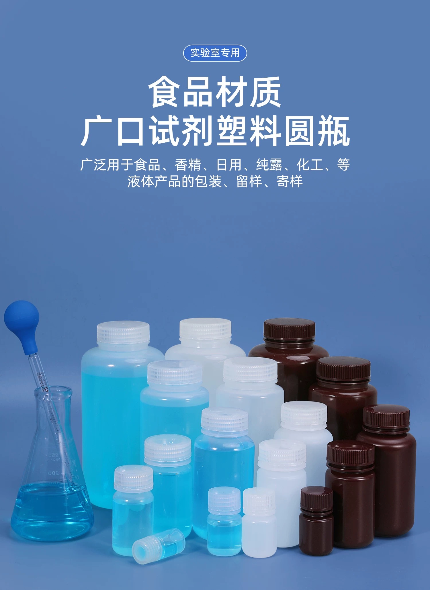 塑料广口瓶凭借易开启、便于取放和观察的特性,广泛应用于食品(如蜜饯、坚果、干货)、医药(如固体片剂、胶囊)、日化(如护肤品、洗护剂)及实验室(如试剂分装、样品储存)等行业,作为固体或半流体物料的包装与储存容器。