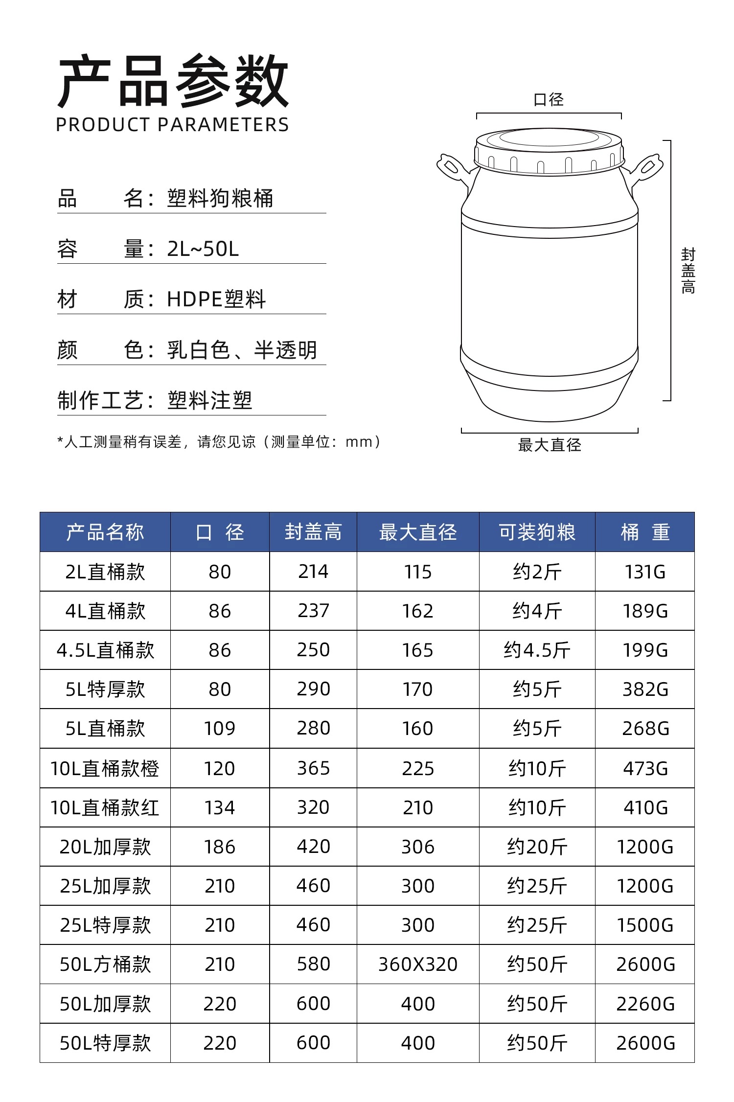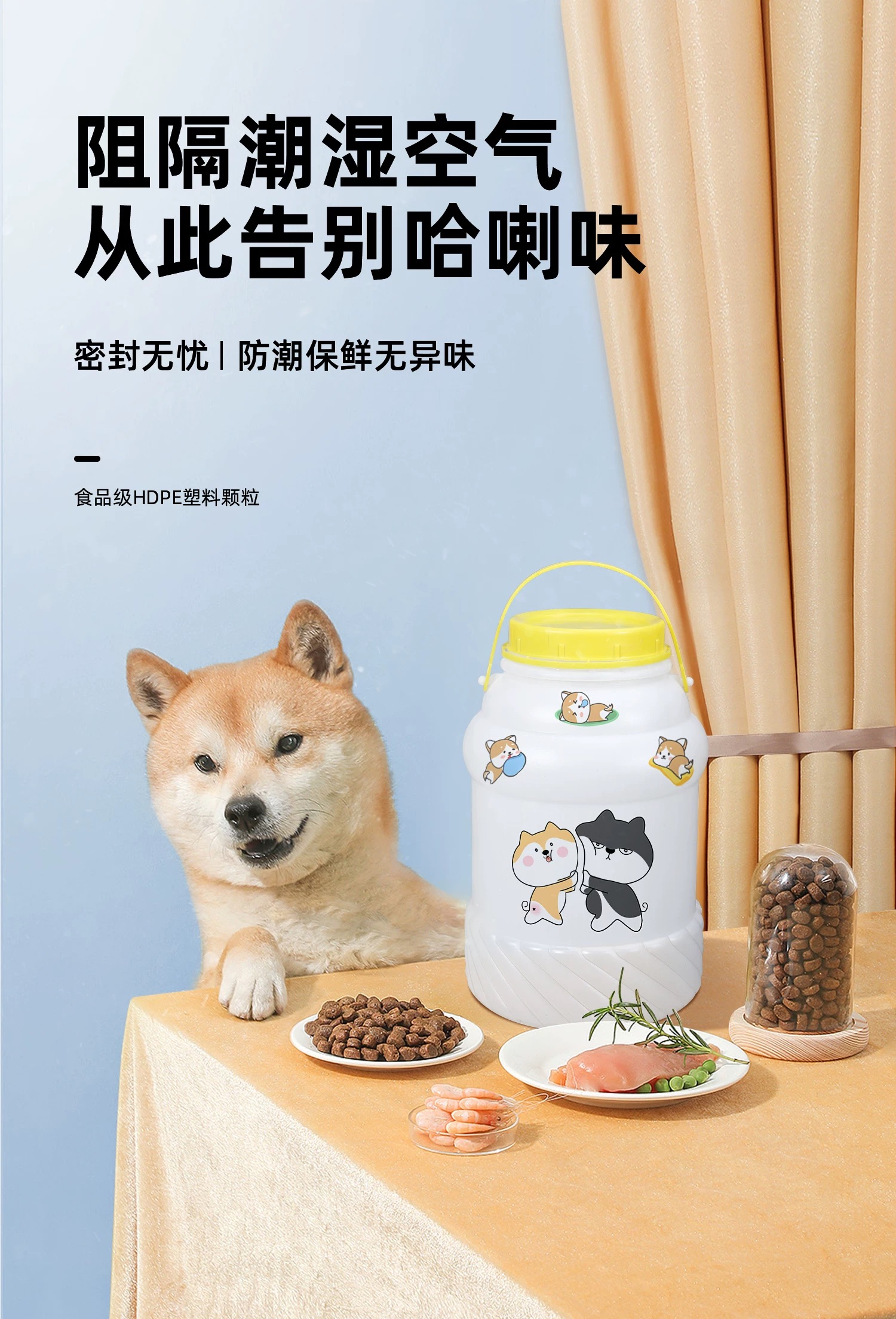 塑料狗粮桶主要应用于宠物食品行业,用于宠物狗粮的储存、包装及家庭或宠物相关场所的日常收纳。